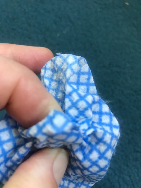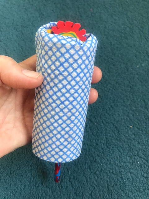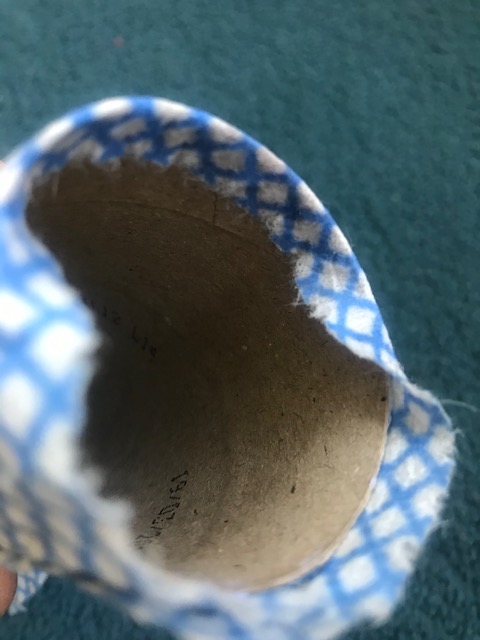 Put a pencil into the roll and put the material over it from both sides. It’s best to glue it down with UHU onto the pencil