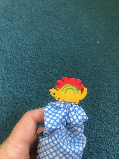 A happy looking rubber pressed down on top with glue to secure it . Put your own drawn face on the rubber if you wish.