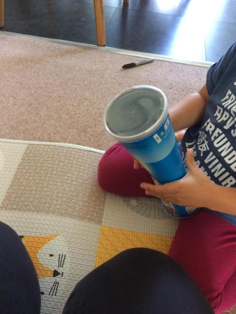 Use old containers like Pringle cylinders to play Pop goes the Weasle! Just squeeze the sides with the lid on and – pop it will come flying off. Many can be decorated and used to play rolling to each other games or… filled with some dry beans or seeds to make a shaker…. or you can use them as drums….or as fun place to store your rhythm stones or treasures!