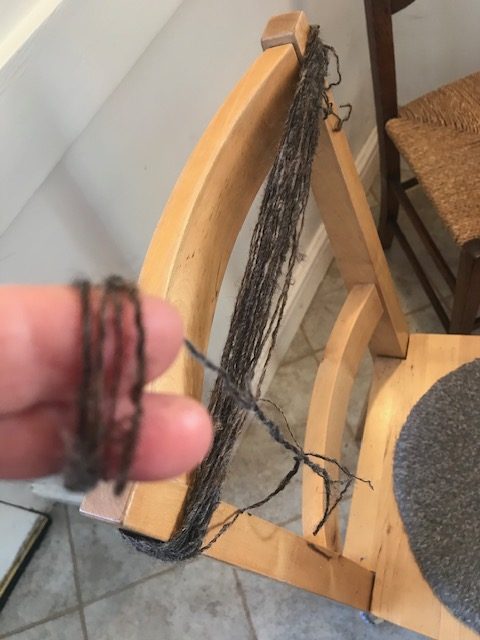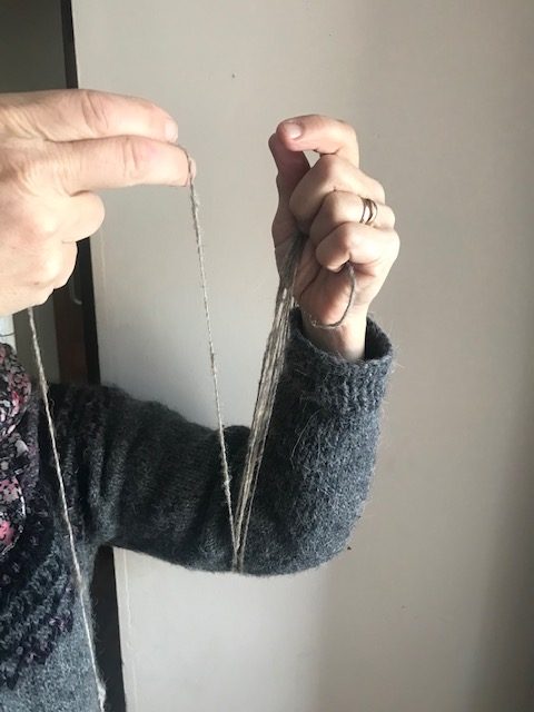 Use size 3-4 needles and approximately 35 metres ( hand to chest or hand to elbow – 1m).Wind it round in 1m lengths.