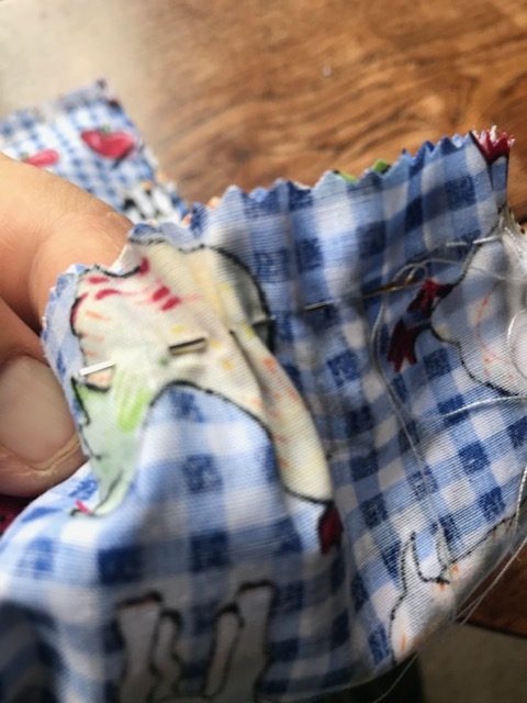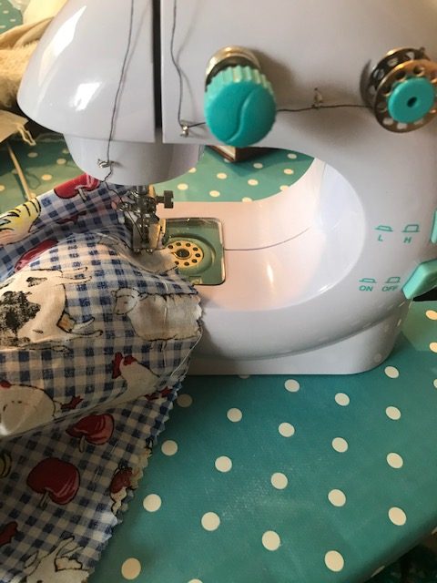Fold the material 2cm down from the top of the bag. Sew a hem for a cord