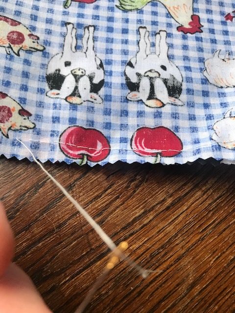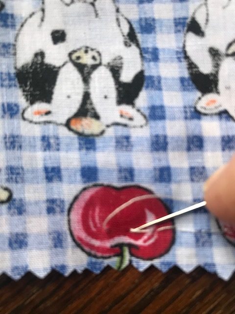 Pull the needle and thread through and repeat this process till the end of the row – then lay it flat