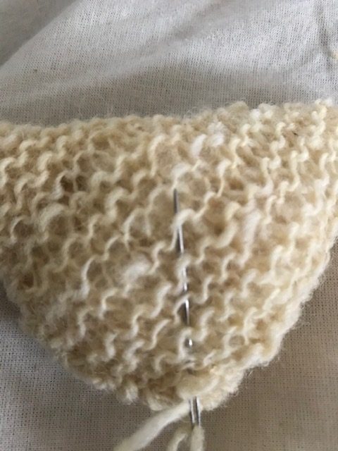 Turn your square into a triangle . Sew round the edge and fill with sheep’s wool