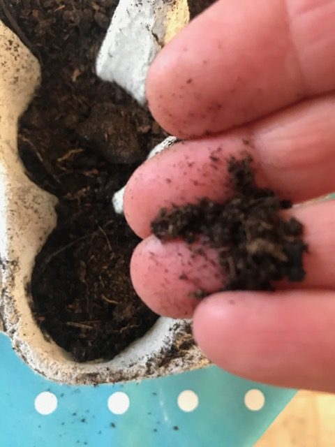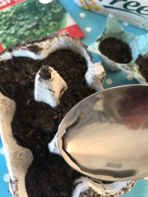 Make the soil moist before putting the seeds on top. Children can use a spoon to water the seeds