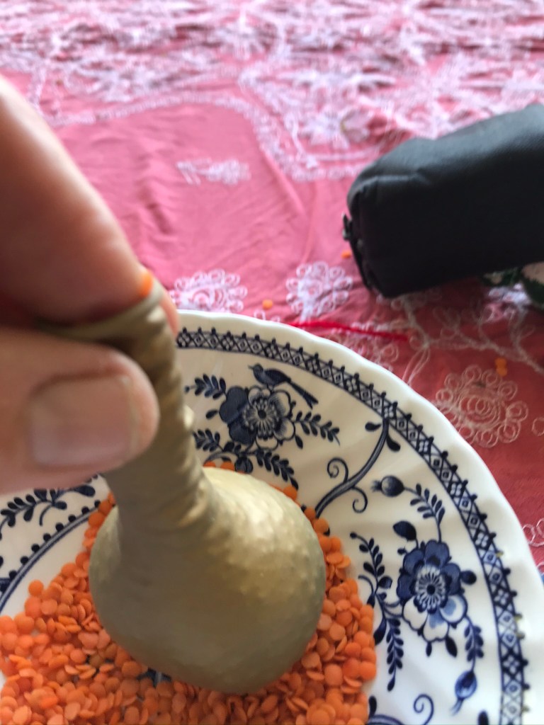 - A balloon and red lentils to fill it