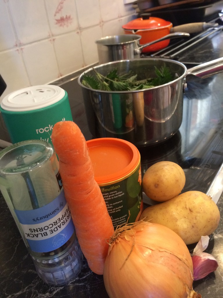 To make a lovely soup add nettles to the following ingredients :