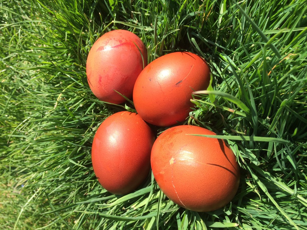 We have an Easter tradition of getting up at sunrise. Find a local hill and roll your eggs down. The winner is the egg that is least damaged at the bottom ! The reward ? A chocolate egg!